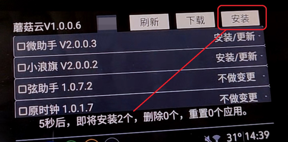 选择“卸载”,点击“下载”->“安装”;车机重启后,即可完成精简。
